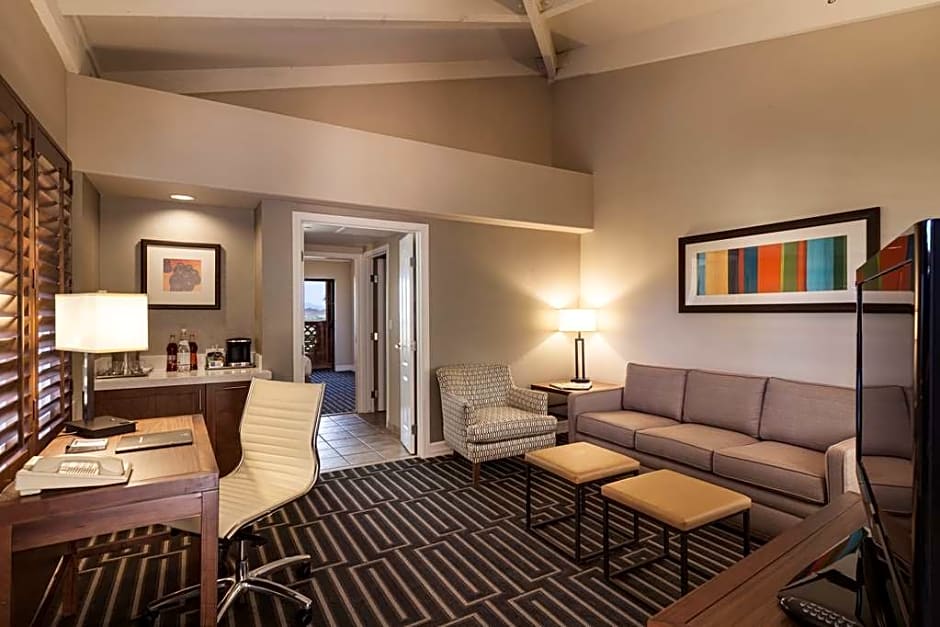 Mountain views, 2 flat-screen TVs, balcony, a mini refrigerator and work desk area featured in this room. An private bathroom is also included.